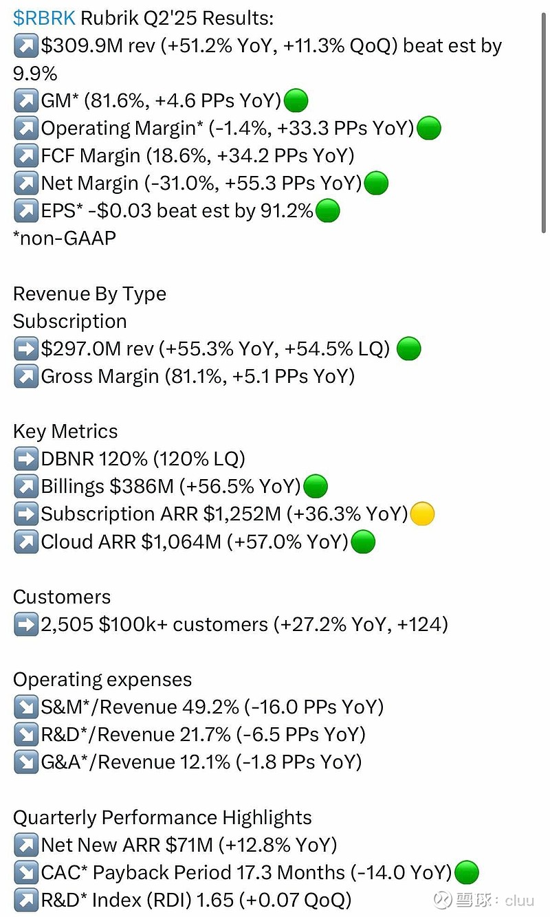 $Rubrik(RBRK)$ 这么炸裂的业绩,盘前竟然小跌?看看开盘会不会拉起来Rubrik beat revenue estimates by 9.9%, raised next quarter guidance by 5.6%, and lifted full-year guidance by 4%.