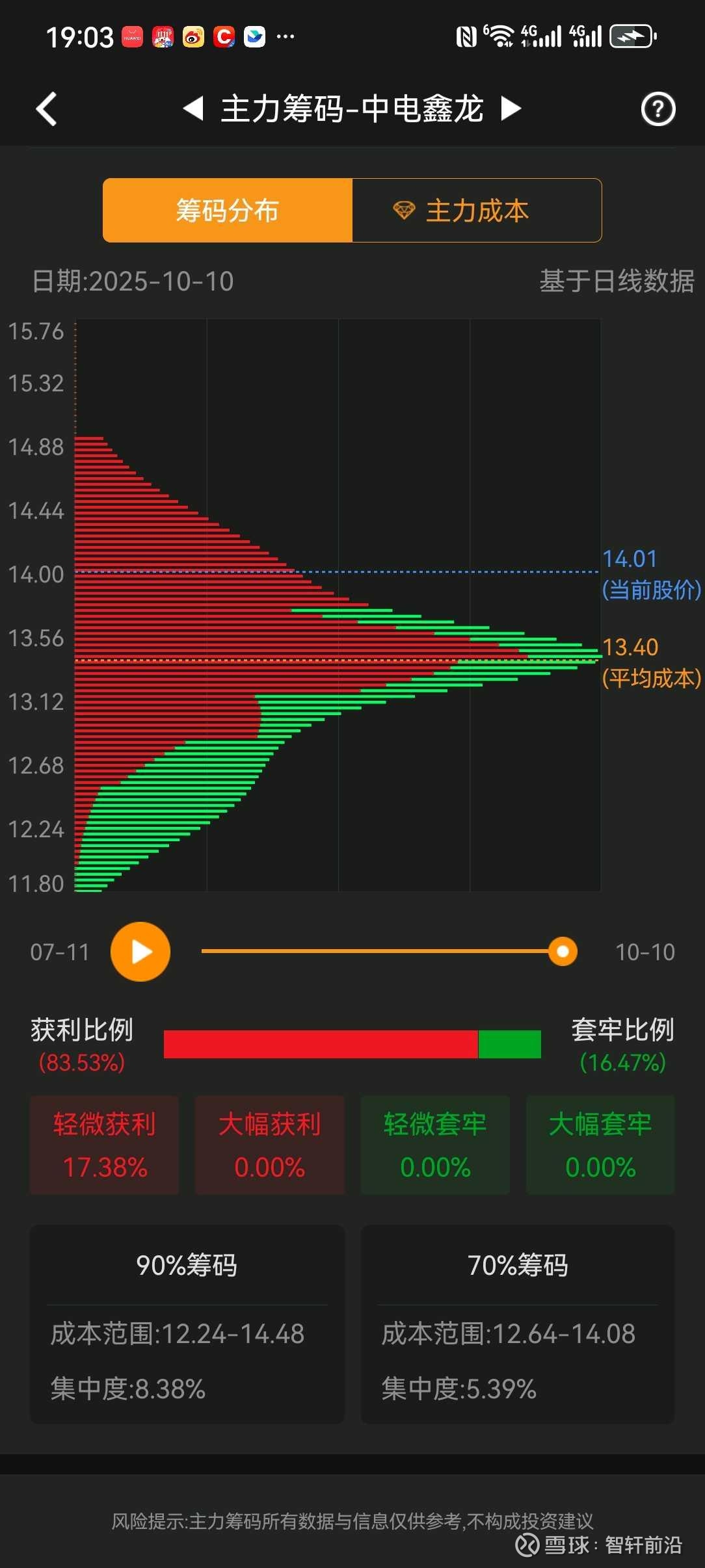 朋友们,看一只股票强不强,不能光看K线涨跌。咱们得学会看“筹码”,这就像是看一场牌局的 “底牌分布” ,能看出大多数人是赚是亏,是团结还是散乱。今天就用中电鑫龙10月10日的数据,带大家看一场 “明牌”局。