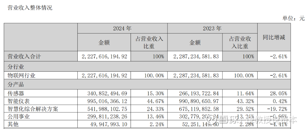 传感器是核心,但是规模不大,2024年营业收入只有3.41亿,智能仪表是传感器的延伸,综合解决方案是智能仪表的延伸,公用事业是在客户那里的延伸,这么四面开花地搞,2024年总营业收入也只有22.28亿。