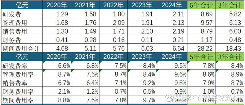 (1-毛利率)=营业成本/营业收入,前面我们已经看过毛利率。这里我们看下期间费用,期间费用就是与营业收入变化无关仅仅与期间相关的费用开始,管理费用、研发费用、销售费用,这三项与经营直接相关,财务费用与借款负债资金运用相关。