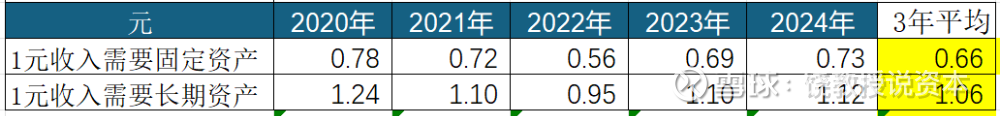 一元资产需要的固定资产和长期资产,是我们另一个观察投入产出的窗口,汉威一元收入需要固定资产3年平均0.66,不低,原因是汉威一直在自己投产能,甚至自己投晶圆厂做IDM,这也反映了汉威的商业模式,产品带不来好收益,只能从垂直一体化节约成本上做文章。此外,汉威策略是横向扩展到各个行业,策略是并购,因而商誉也不少,导致长期经营资产也不低。
