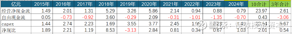 ROE,2020年14.2%,不错,随后一路下滑到,2024年的2.7%。这与我们之前的分析印象一致,生意不咋样。