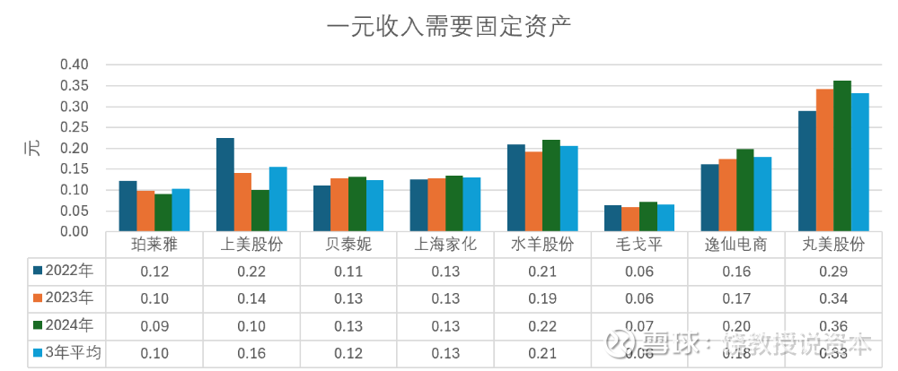2022-2024年3年平均,丸美股份0.33,比第二名水羊股份0.22高50%,比行业龙头珀莱雅高出3倍。