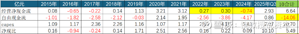 自由现金流=经营净现金流-资本开始capex。埃斯顿自由现金流为负数,原因是经营净现金流不佳,资本开支巨大。