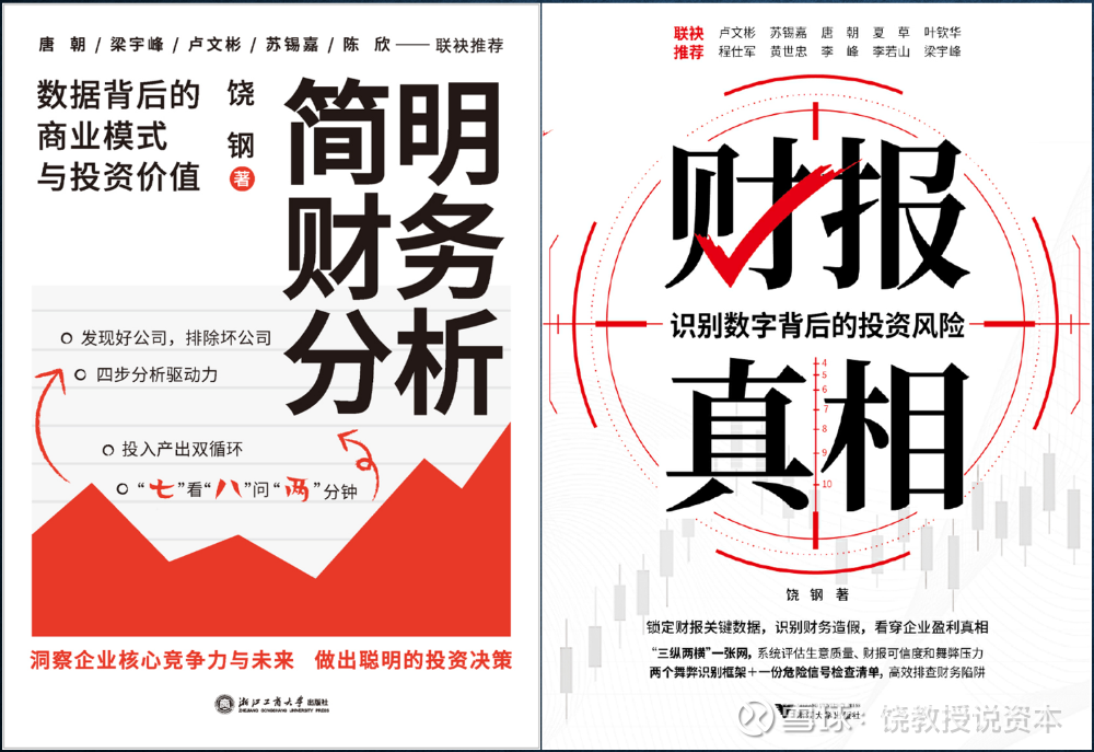 发现好公司的方法:“投入产出双循环,七看八问两分钟”,参见新书《简明财务分析》。排除坏公司,好生意的反面就是烂生意,烂生意的极致是财务造假,识别财务造假的方法:“三个维度、二个框架、一张检查清单”,参见新书《财报真相》。京东当当微信读书都有,需要签名版请加我微信raojiaoshou9。