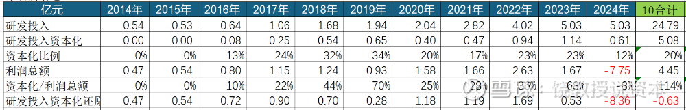 实际上,埃斯顿在研发投入资本化上也比较激进。10年把研发投入20%资本化了,简单算术,10年合计利润总额4.45亿,如果把资本化还原回去,基本就是亏钱了。