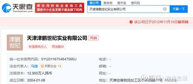 值得注意的是,第四大股东天津津鹏世纪实业有限公司(简称“津鹏世纪”)已于2012年11月被吊销,也就是在弘康人寿成立的四个月之后,但至今该公司持有的弘康人寿股权一直都是“正常”状态。