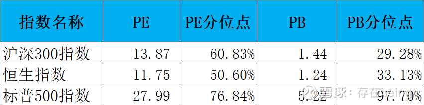 说明:其中沪深300指数分位点是从2005年(沪深300指数2005编制起点)开始计算,恒生指数和标普500指数是从2000年开始计算。