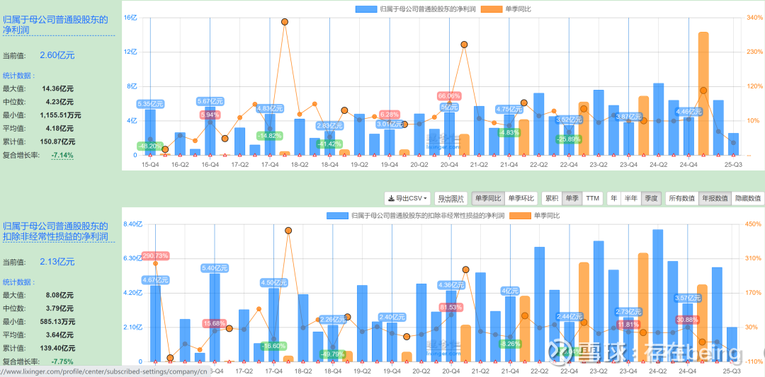 查看最近的归母净利润和扣非归母净利润,就发现问题来了。