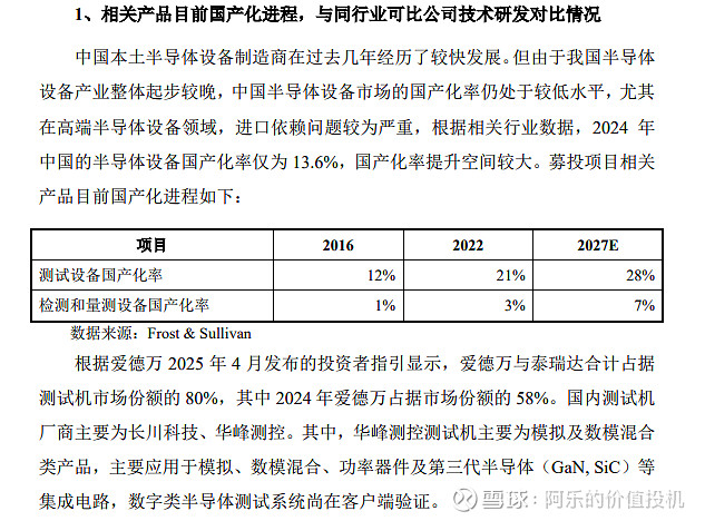 看下目前测试设备国产化率多少,这是空间,很明确的告诉你,和美国缓期的一年,我们会死命发展国产替代,加速发展,最受益的是谁?国产化的设备,当然不只是长川一家。