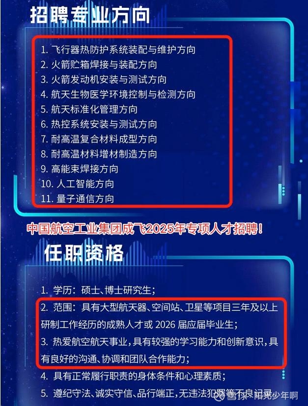 中国航空工业集团成飞2025年专项人才招聘——重大转型! 中国航空工业集团成飞专项招聘聚焦航天、火箭、卫星、空天技术等新兴领域,响应国家空天一体化战略,成飞作为航空工业集团核心单位,正加速向空天技术拓展!