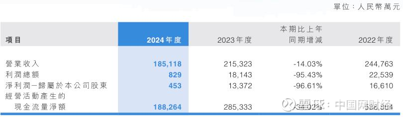 中国网财经4月1日讯 日前,中泰期货(股票代码:01461.HK)公布2024年年报显示,2024年公司营业收入为18.51亿元,同比下降14.03%;归母净利润为453万元,同比下降96.61%。