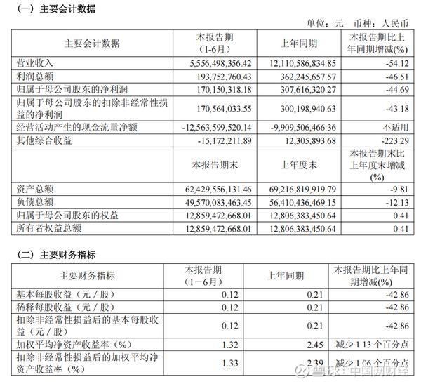 中国网财经8月28日讯 今日,永安期货(证券代码:600927.SH)发布《2025年半年度报告》披露,公司本期营业收入55.56亿元,同比下降54.12%;归属于母公司股东的净利润1.70亿元(170,150,318.18元),较上年同期下降44.69%;实现基本每股收益0.12元,同比下降42.86%;加权平均净资产收益率1.32%,同比减少1.13个百分点。