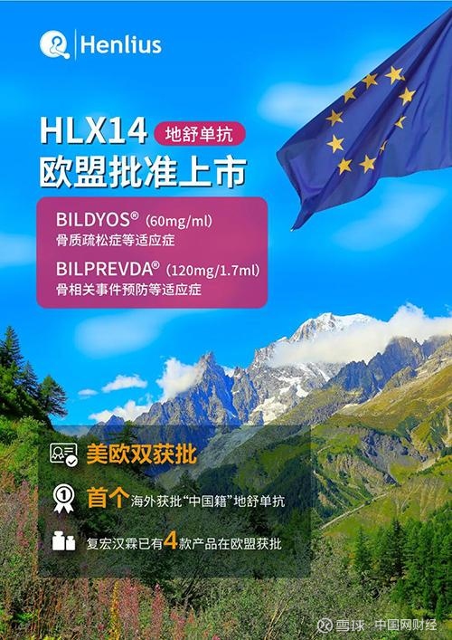 中国网财经9月19日讯 复宏汉霖(2696.HK)与Organon(纽交所代码:OGN)今日联合宣布,欧盟委员会(EC)已批准地舒单抗注射液(60 mg/mL)BILDYOS(denosumab)和地舒单抗注射液(120mg/1.7mL)BILPREVDA(denosumab)的上市许可,两款产品分别为PROLIA(地舒单抗)和XGEVA(地舒单抗)的生物类似药,覆盖原研产品在欧盟已获批的所有适应症。