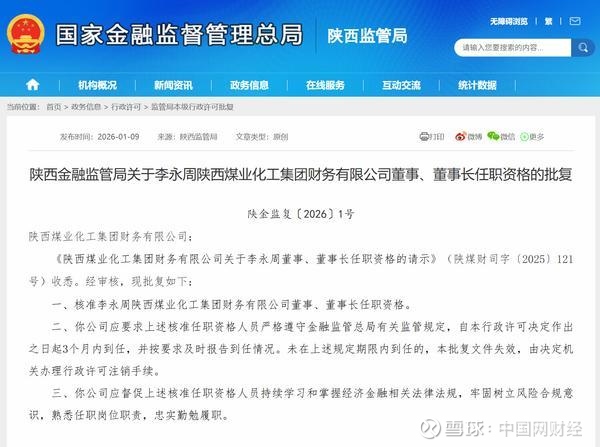 化工集团财务有限公司(简称“陕西煤业化工集团财务公司”)董事、董事长任职资格。以下是相关批复正文: