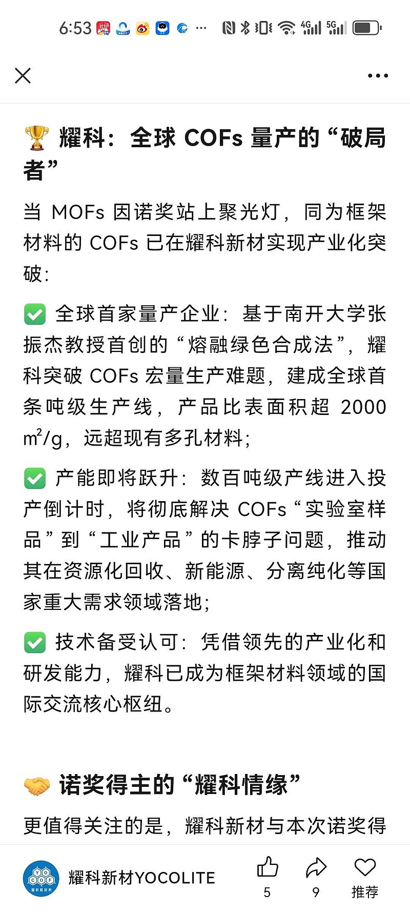 耀科官方微信正式宣布:数百吨cofs产能已经进入投产倒计时,有这么快吗?