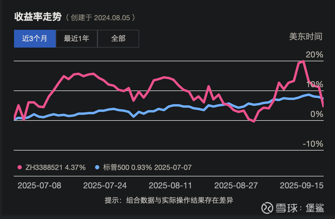 这是我在雪球做的美股组合,从7月开始一路加仓加密,且在FOMC前满仓后组合的三个月走势。