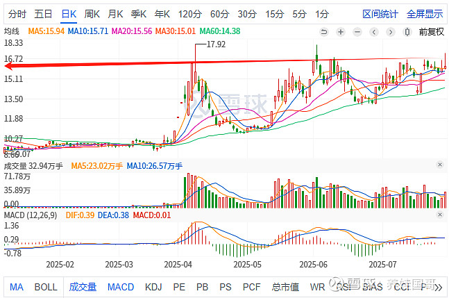 16.5左右是多重顶压力,突破就还有行情,跌破15.57就得卖出了