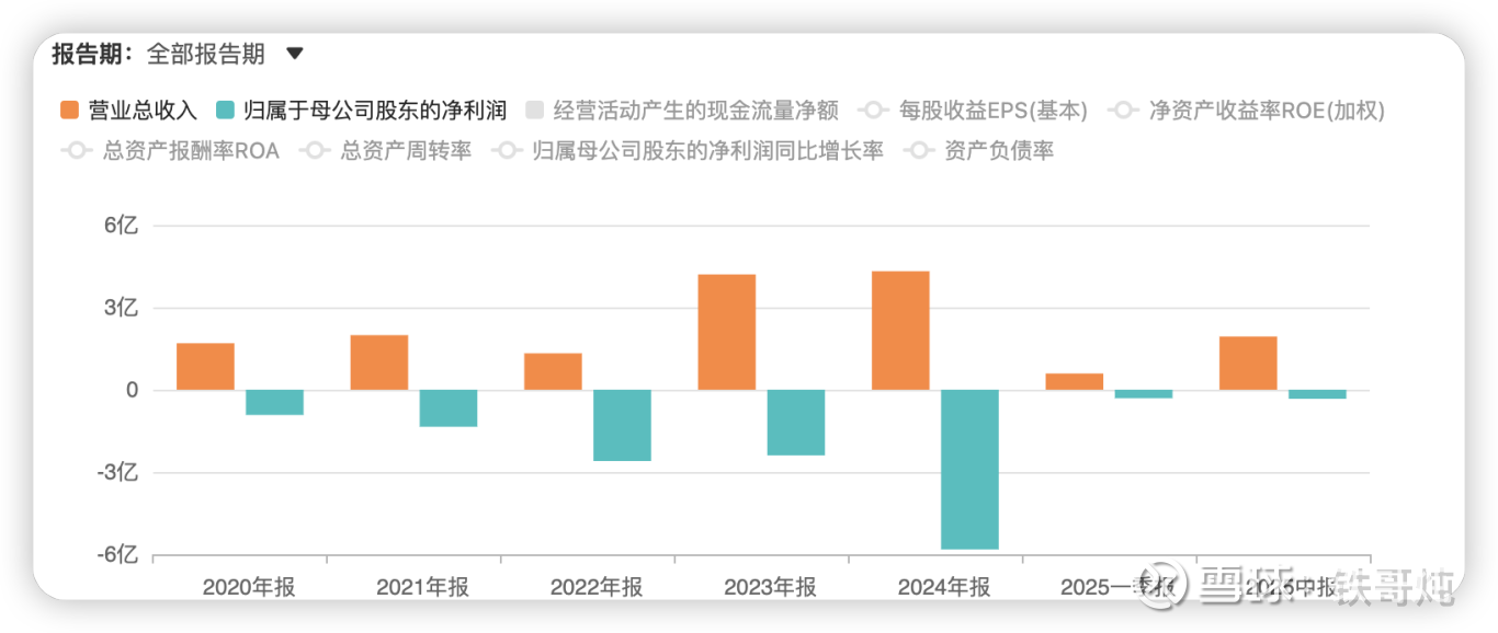 2024年总营收只有4.32亿,然而净利润却巨亏5.82亿元(上图:绿色柱子比橙色柱子还高!),同比增亏143%。