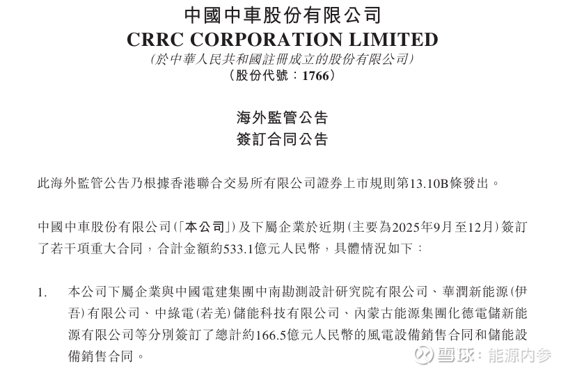 12月17日,中国中车发布公告,披露其签订533.1亿元合同。