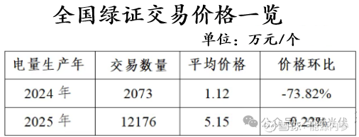 2026年1月22日,国家能源局公布了2025年1-12月的绿证交易情况:2025年1-12月,国家能源局共计核发绿证29.47亿个,其中可交易绿证18.93亿个。电量生产年为2024年的绿证交易平均价格1.12元/个,电量生产年为2025年的绿证交易平均价格5.15元/个。光伏绿证暴涨459%。