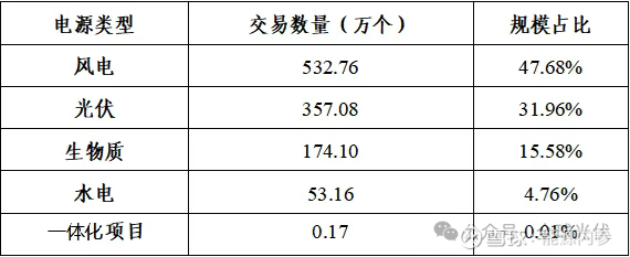 从不同电源类型绿证交易规模情况看,广州电力交易中心平台风电项目交易数量最多,交易规模为532.76万个,占交易总量的47.68%,环比上升128.4%。光伏项目绿证交易规模次之,交易规模为357.08万个,占交易总量31.96%,环比下降40.2%。