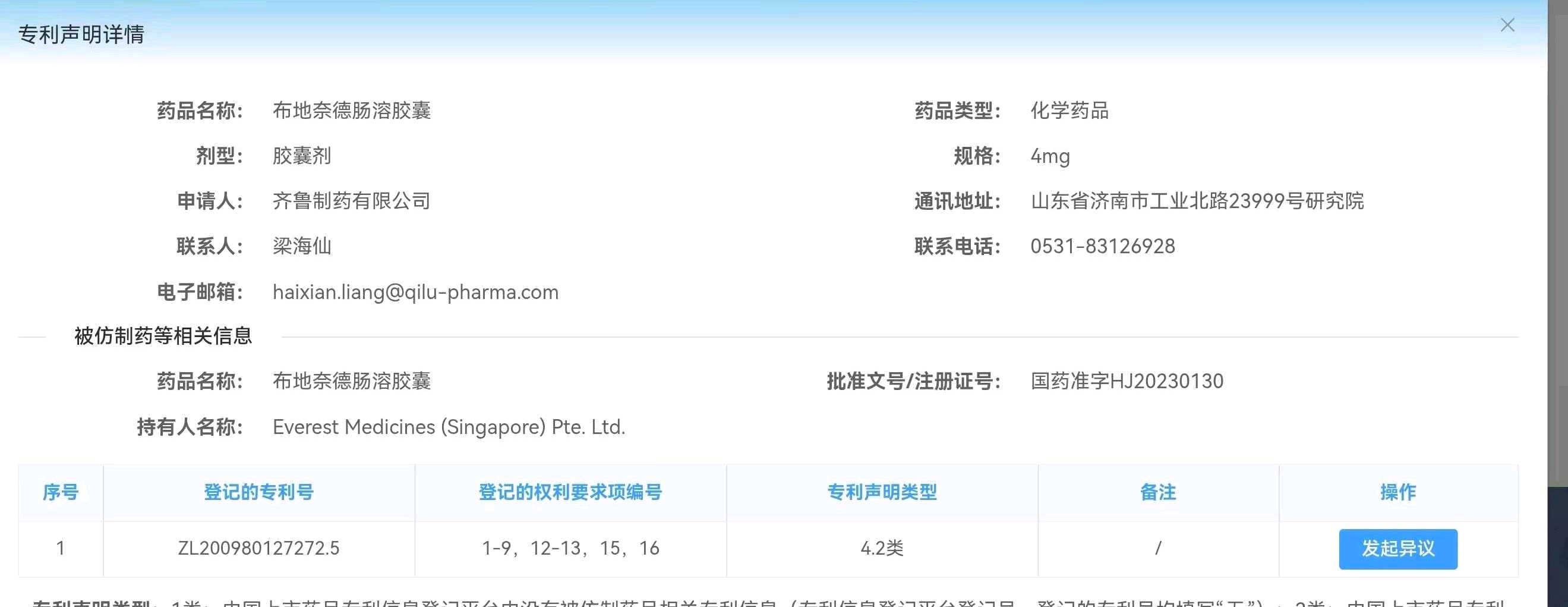 均为4类仿制,4.2类声明。这里普及一下什么是4.2类声明:不挑战专利有效性,而是主张自己的技术方案未落入该专利的保护范围(即“不侵权”)。简单说就是齐鲁和石药两家公司和CDE声明,我们承认云顶新耀的专利是有效的,但我们可以绕过该技术,同样能达到布地奈德肠溶胶囊迟释和缓释的功能。