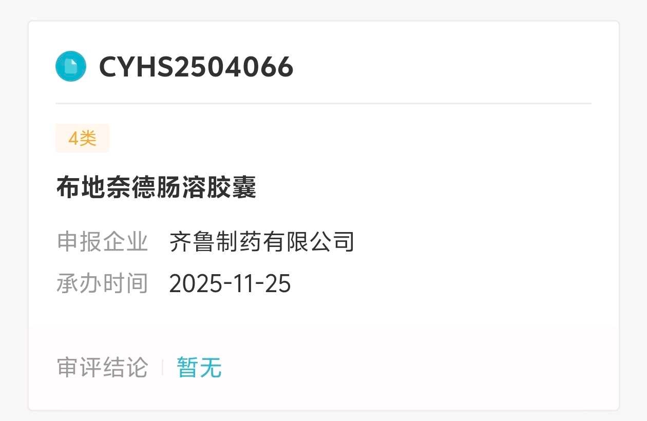 石药的申报时间是2025年3月20日,齐鲁的申报时间是2025年11月25号。