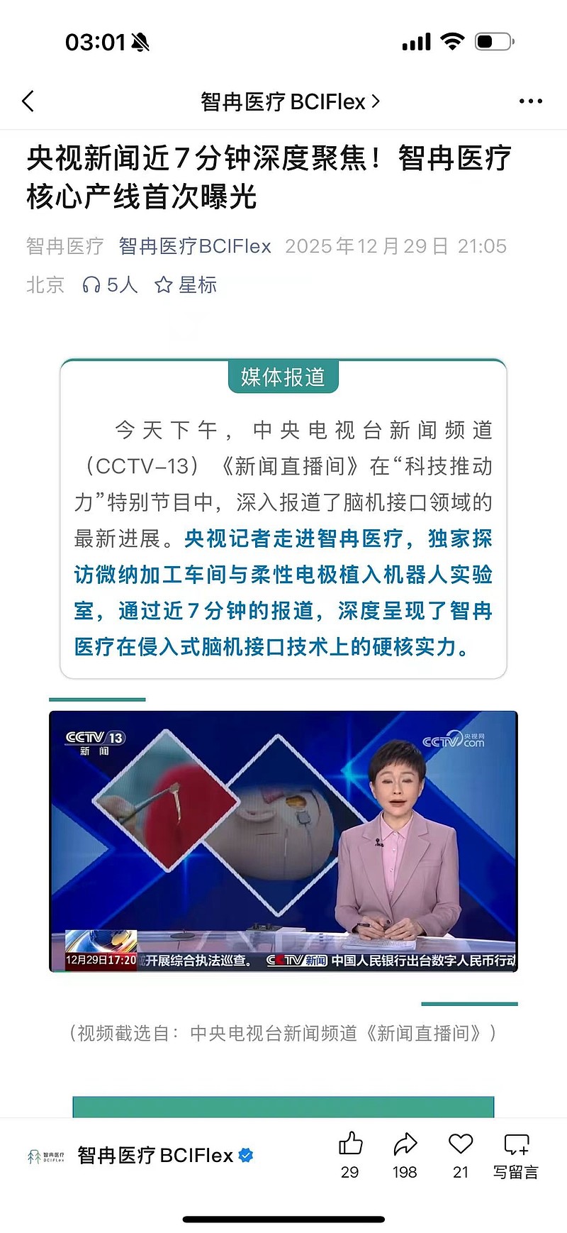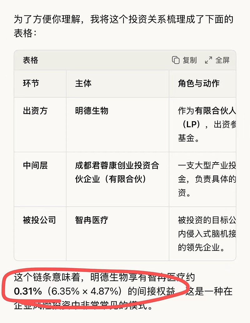 第一、明德生物通过君蓉康投资智冉医疗,通过北京君连昕远持股北卓医疗两家上市公司股权。其中,智冉医疗在12月底被央视连续7分钟报道,核心技术直接对标马斯克旗下脑机公司,甚至电极做的比他更细。