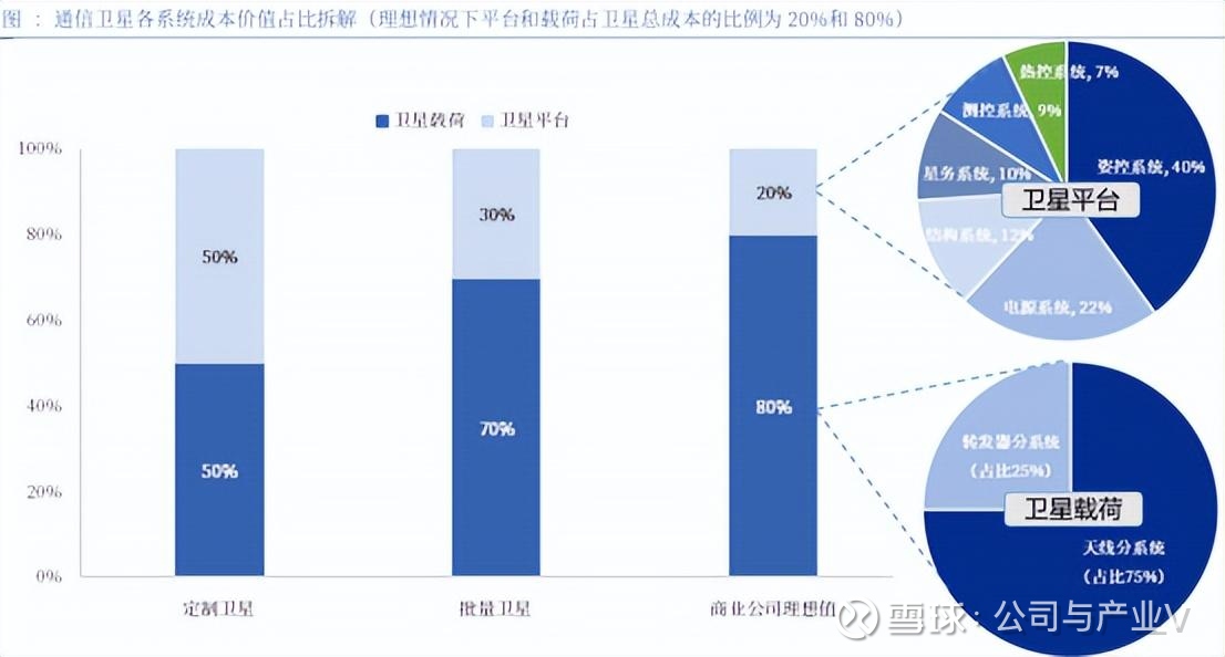 一般情况下,卫星载荷的成本占比要高于卫星平台。