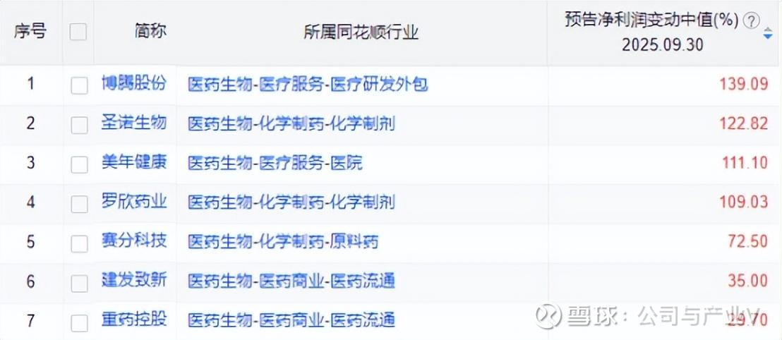截至2025年10月15日,已有多家医药公司发布2025年前三季度业绩预告,其中增长最多的CXO企业博腾股份,预计净利润同比增长139%。