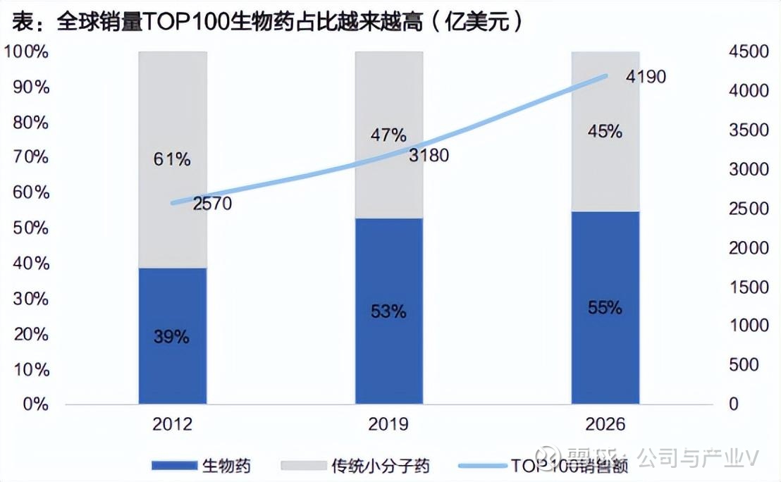 相关数据显示,2026年全球TOP100药品销售额有望达到4190亿美元,其中生物药占比有望达到55%。