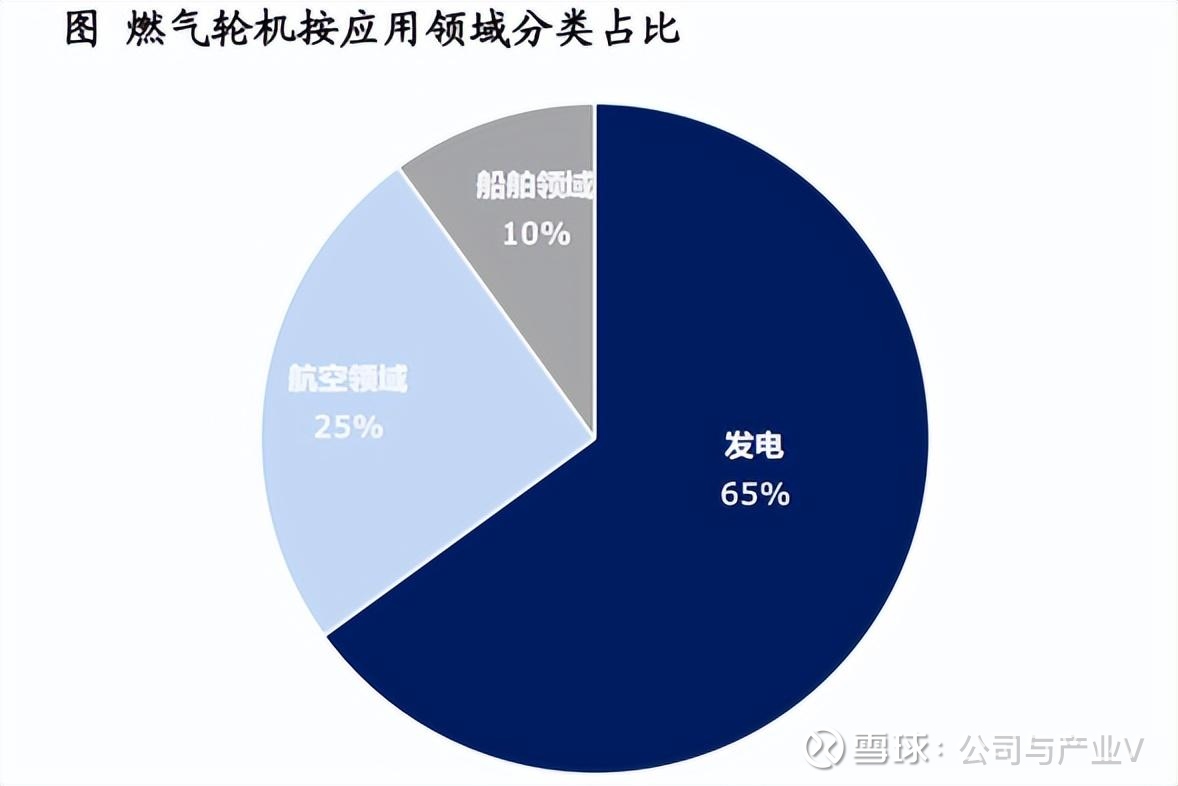 从全球市场看,燃气轮机的主要应用市场是发电,其次是航空和船舶领域,燃气轮机用来发电的市场占比达到了65%。