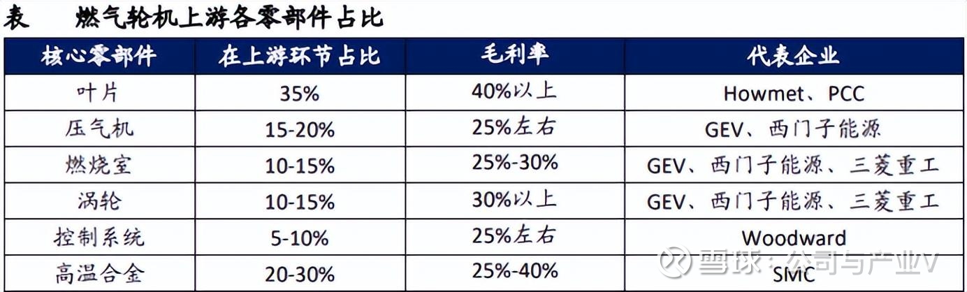 具体来说,燃气轮机上游主要涉及原材料和零部件环节。