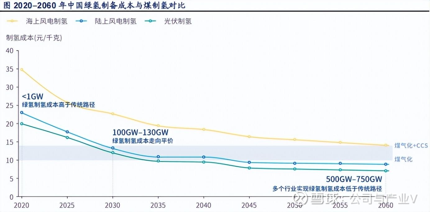 预计到2030年前后,随着装机规模扩大100GW以上,电解质制氢成本有望下降至15元/千克氢气以下,与“煤制氢+CCS”基本相当。