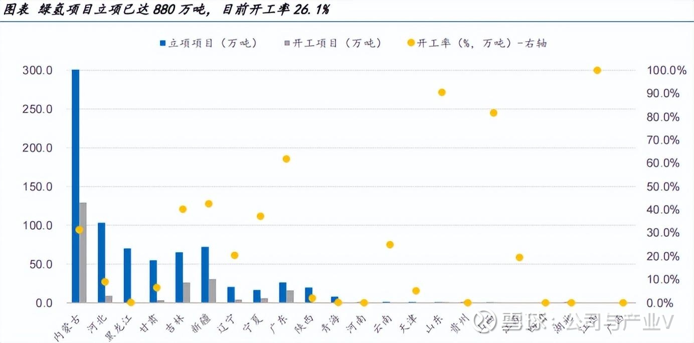 据悉,2023-2025年大量绿氢项目开始申报立项,截至2025年11月,落地项目产能约17万吨,立项项目产能达880万吨,绿氢项目将迎来开工潮。