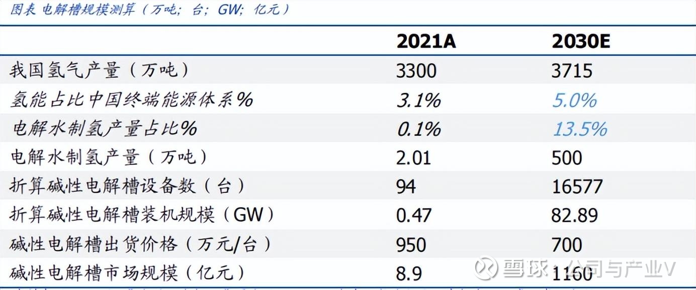 国盛证券预测,假设到2030年电解水制氢产量占比达到13.5%,其带来的电解槽装机量有望达到近83GW,那么按700万元/台计算,其带来的市场规模约为1160亿元。