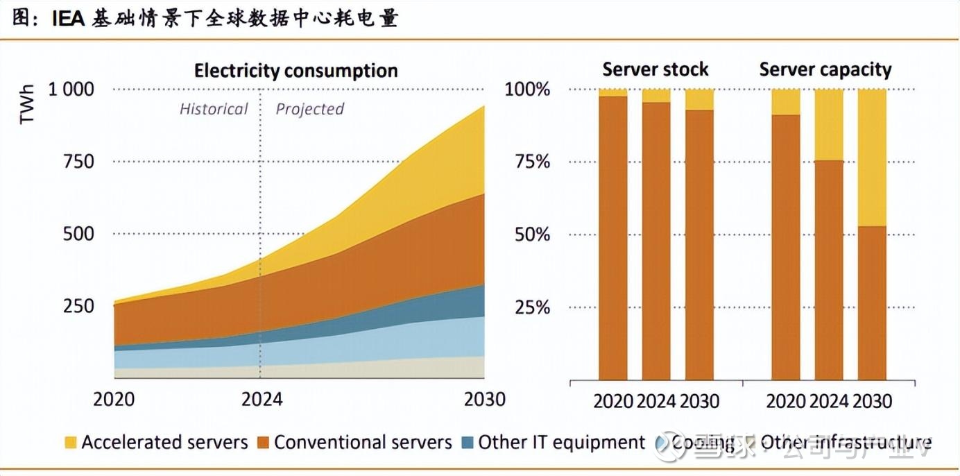 这些用于AI计算的加速服务器占据全球数据中心用电净增量的近50%,预计用电量年均增速达到30%,也成为全球用电量增长的主要因素。