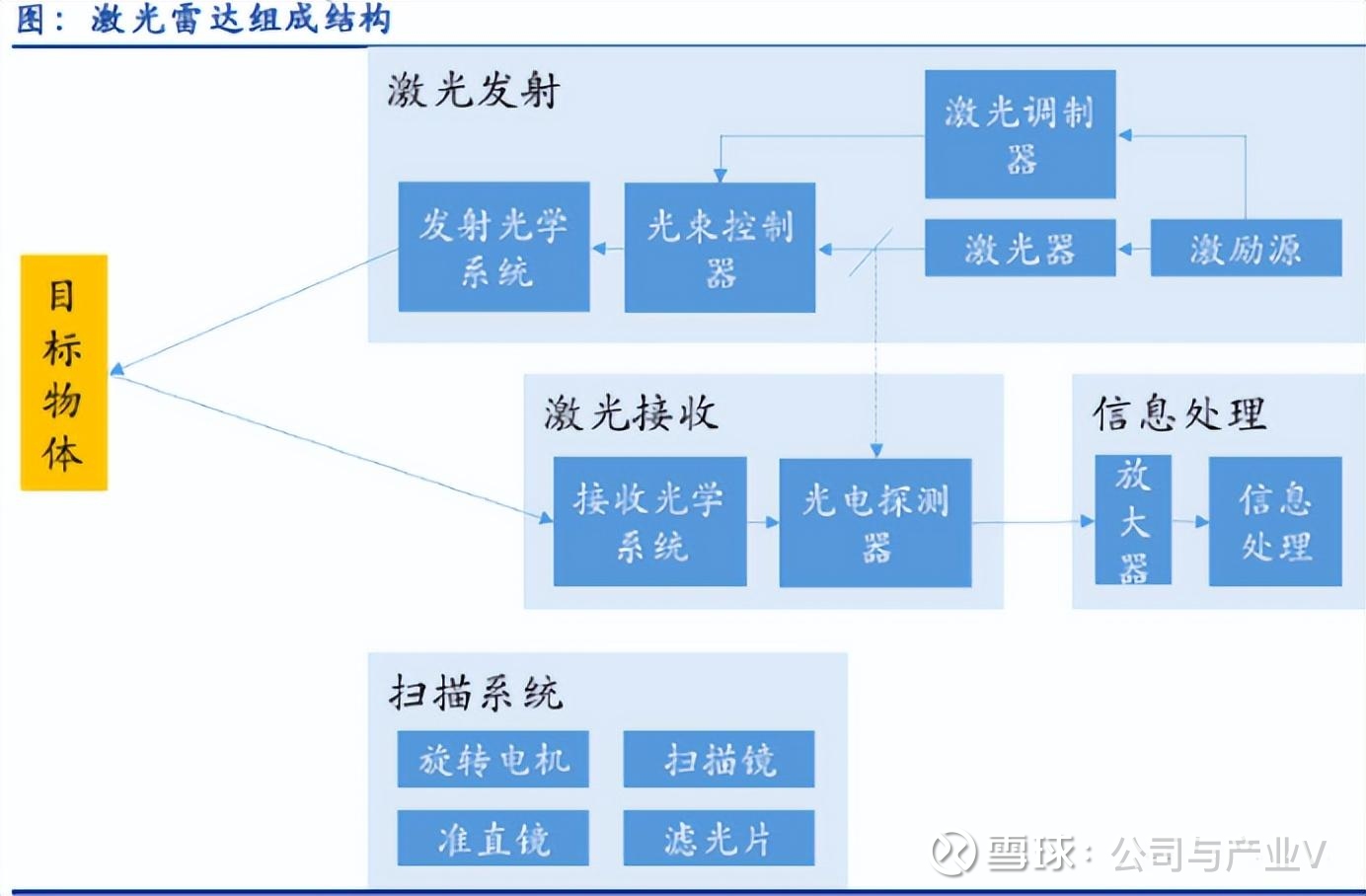 从结构组成来看,由激光发射模组、激光接收模组、测时模组、控制模组四部分组成的光电系统是激光雷达的最核心部件。