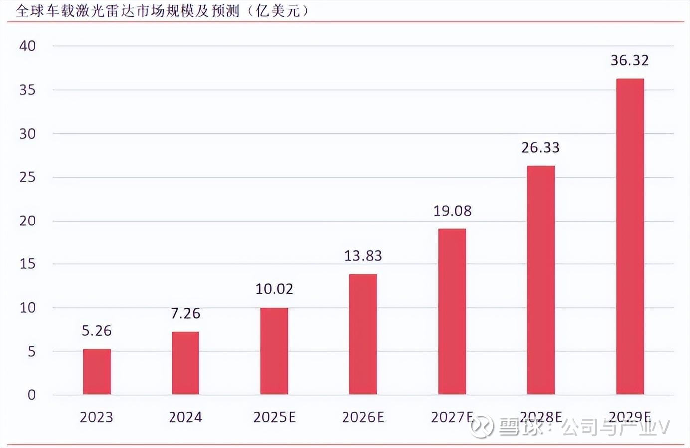 根据观研天下的数据,2024年全球车载激光雷达市场规模增长到7.26亿美元,预计2029年将达到36.32亿美元。