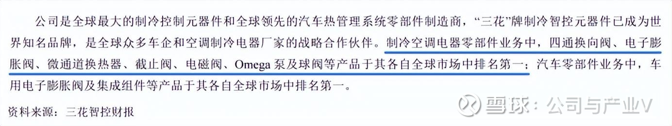数据显示,公司空调电子膨胀阀、四通换向阀、截止阀、电磁阀、微通道换热器、Omega泵等产品市场占有率全球第一,其中电子膨胀阀、四通换向阀全球市占率超过50%。