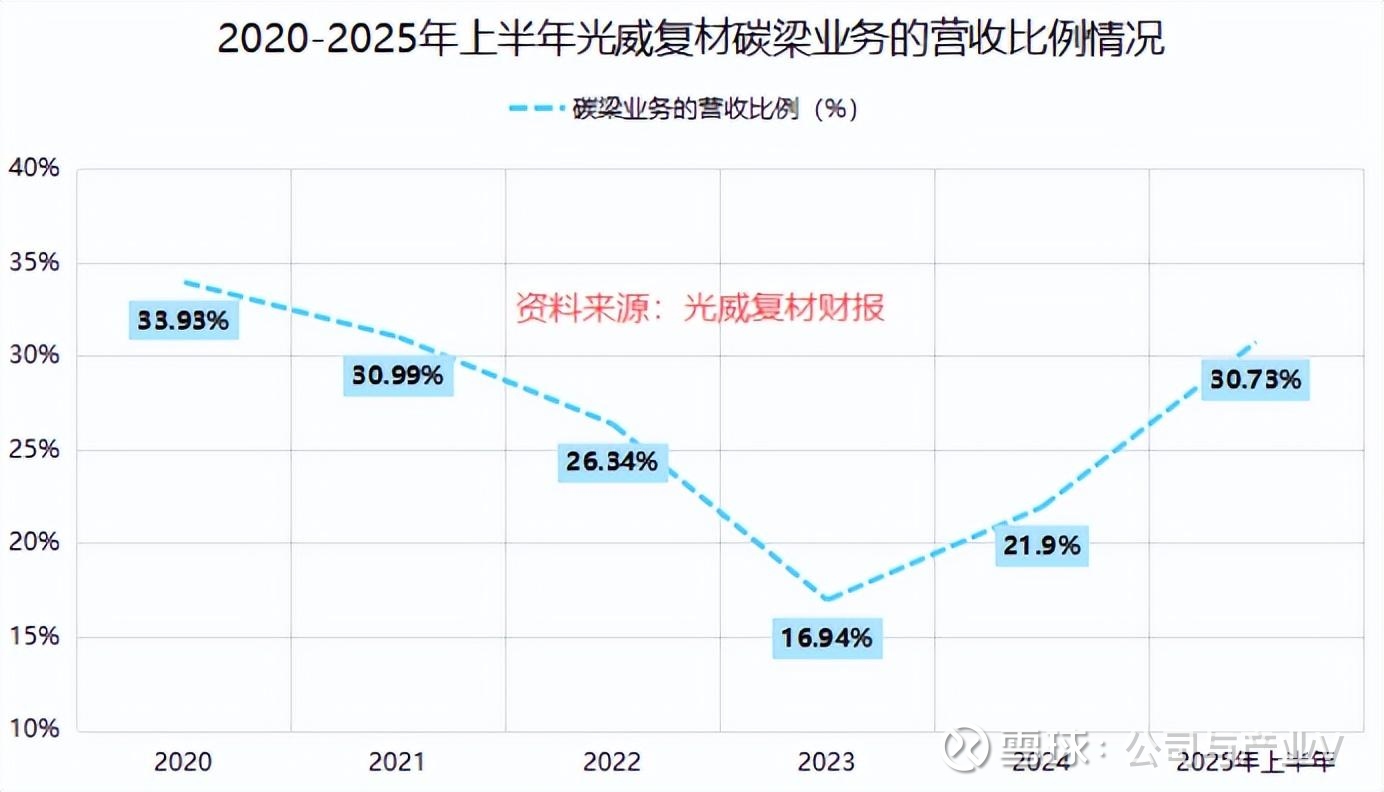 2025年半年报中,这块碳梁业务的营收比例已经达到30.73%,比2024年同期增加了9.15个百分点。