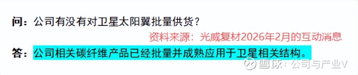 就在2026年2月,光威复材还公开承认,其碳纤维产品已经批量并成熟应用在了卫星结构上。