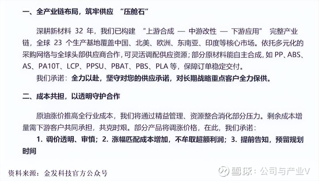 但这块业务高度依赖原油、聚丙烯等原材料,价格波动风险极大。3月7日,因油价大幅上涨,金发科技不得不发布致客户公开信,明确提高部分产品价格以转嫁成本压力。