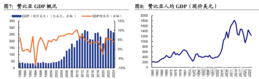 赞比亚政局稳定,营商环境较好。自 1964 年独立以来,赞比亚未与邻国发生任何军事冲突。“铜矿之国”、矿产丰富。赞比亚是世界第七大产铜国,素有“铜矿之国”的美誉,此外还蕴有钴、铅、锌、镉、镍、铁、金、祖母绿、水晶等多种矿藏。