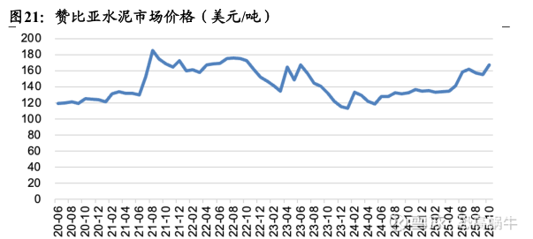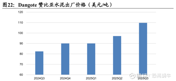 从 Dangote 赞比亚的单吨价格也可以看出,其出厂价格季度环比上涨,2025Q3 出厂价格已近 110 美元/吨。