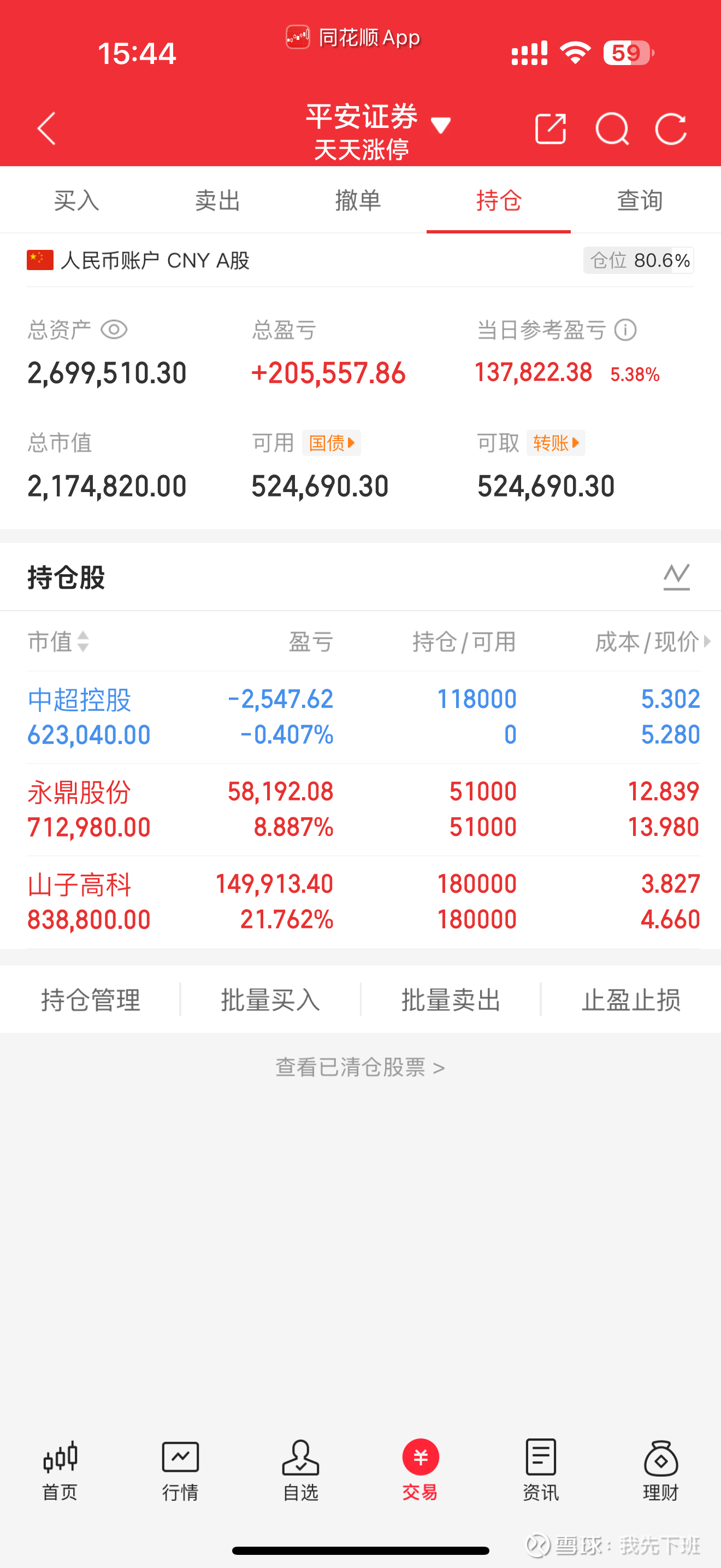节后继续更新,山子 永鼎 双板 新进中超控股。牛市好时代,中产的狂欢。