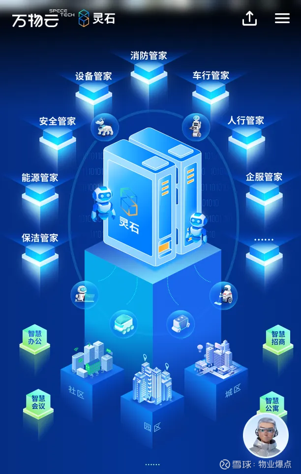 如果说碧桂园服务的打法是“自研自产+规模化投放”,万物云则走出了一条生态整合+商业模式创新的差异化路径。2025年12月,万物云重磅推出核心科技产品“灵石3.0”,并宣布全面开启商业化,其机器人战略的野心和格局尽显无遗。