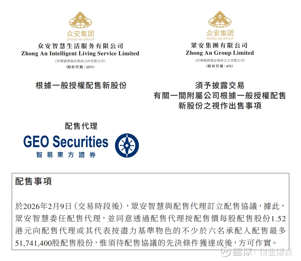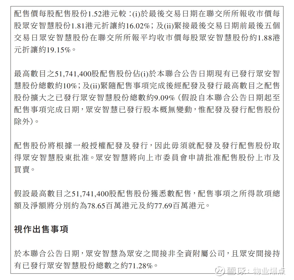 最近港股物管板块的众安智慧生活(2271.HK)发布配售公告,拟配售新股募资补充营运资金,这一操作让不少投资者关注。