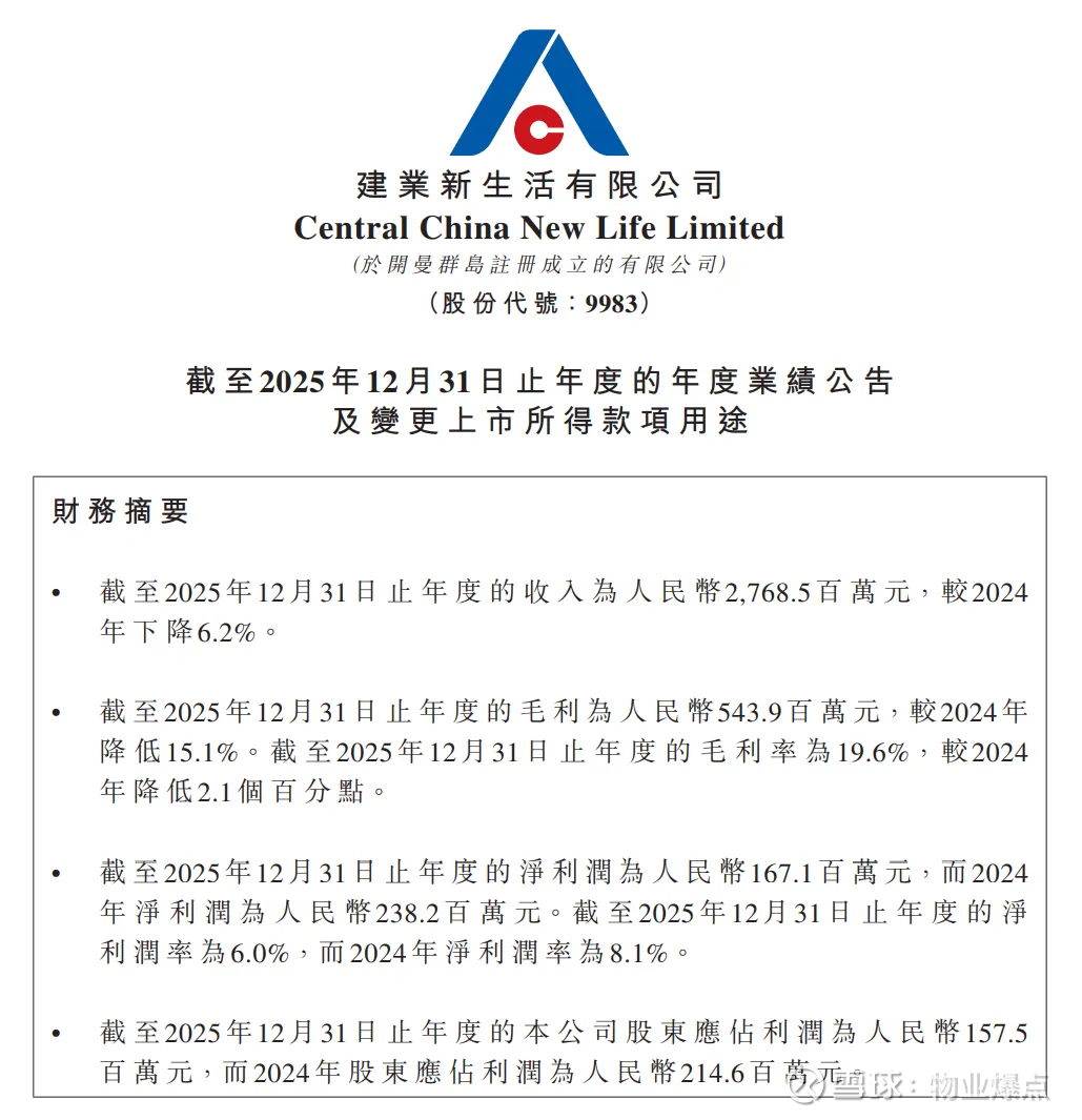 3月20日,深耕河南的建业新生活公布了2025年年报。